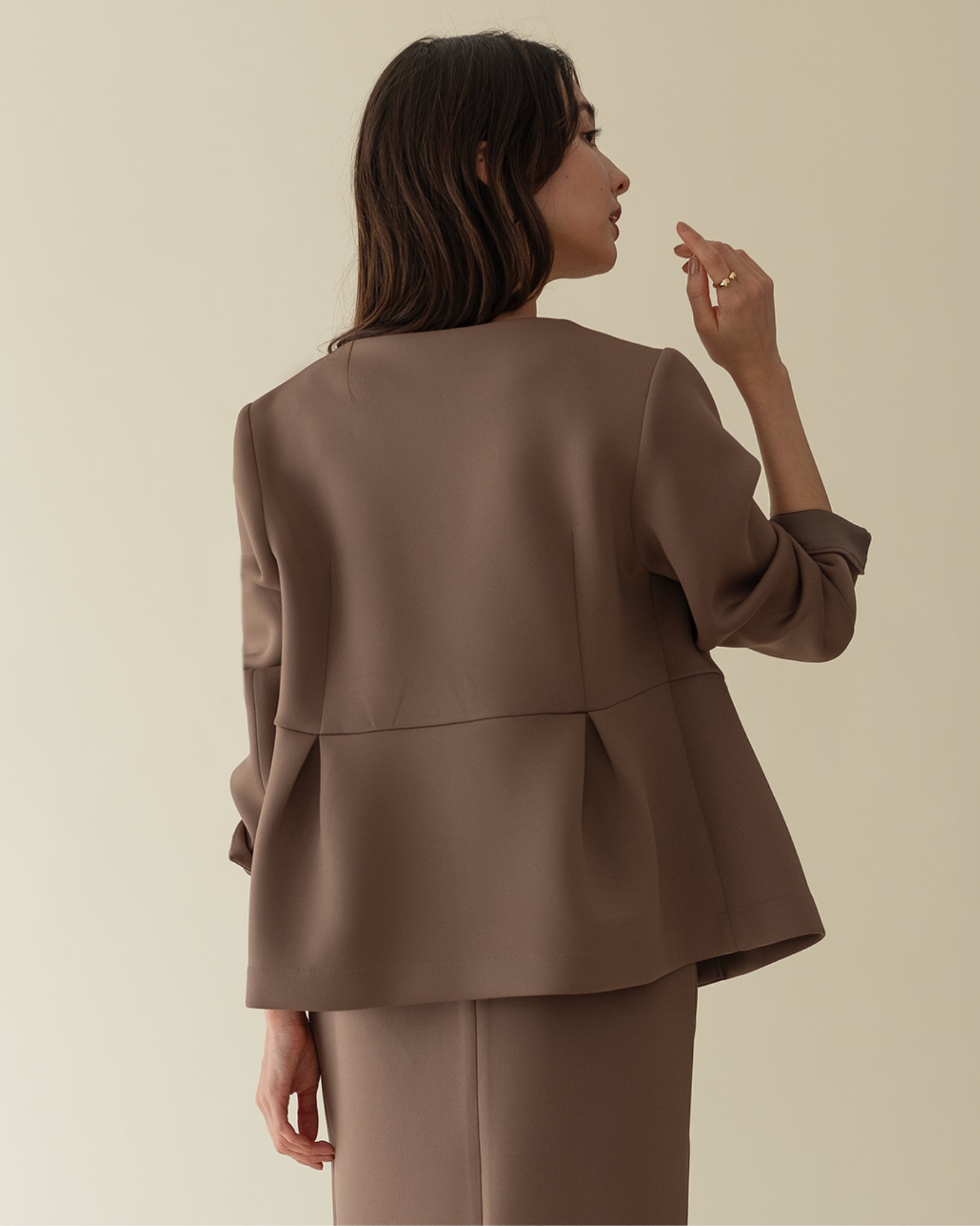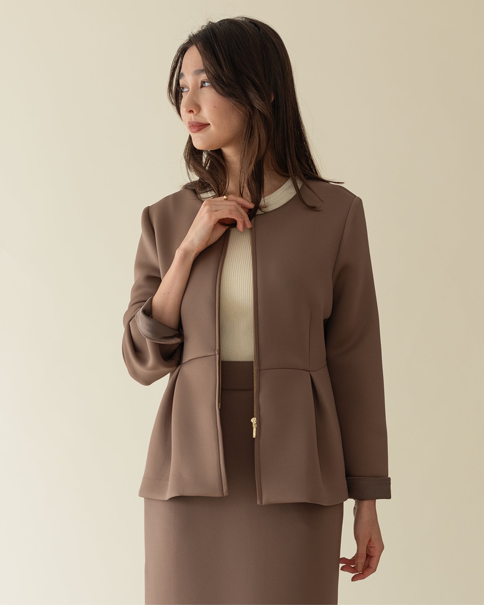驚くほど軽く、もっちりした肌触りのペプラムジャケット。