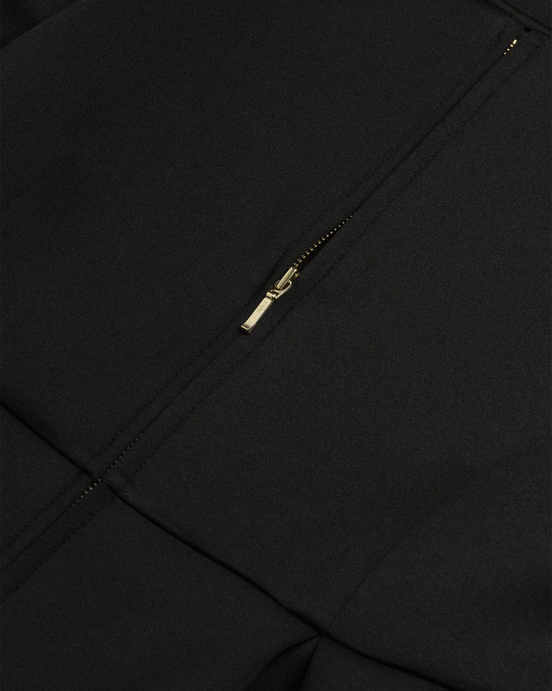 フロントとバックにそれぞれタックを入れて女性らしいフォルムに仕上げています。
